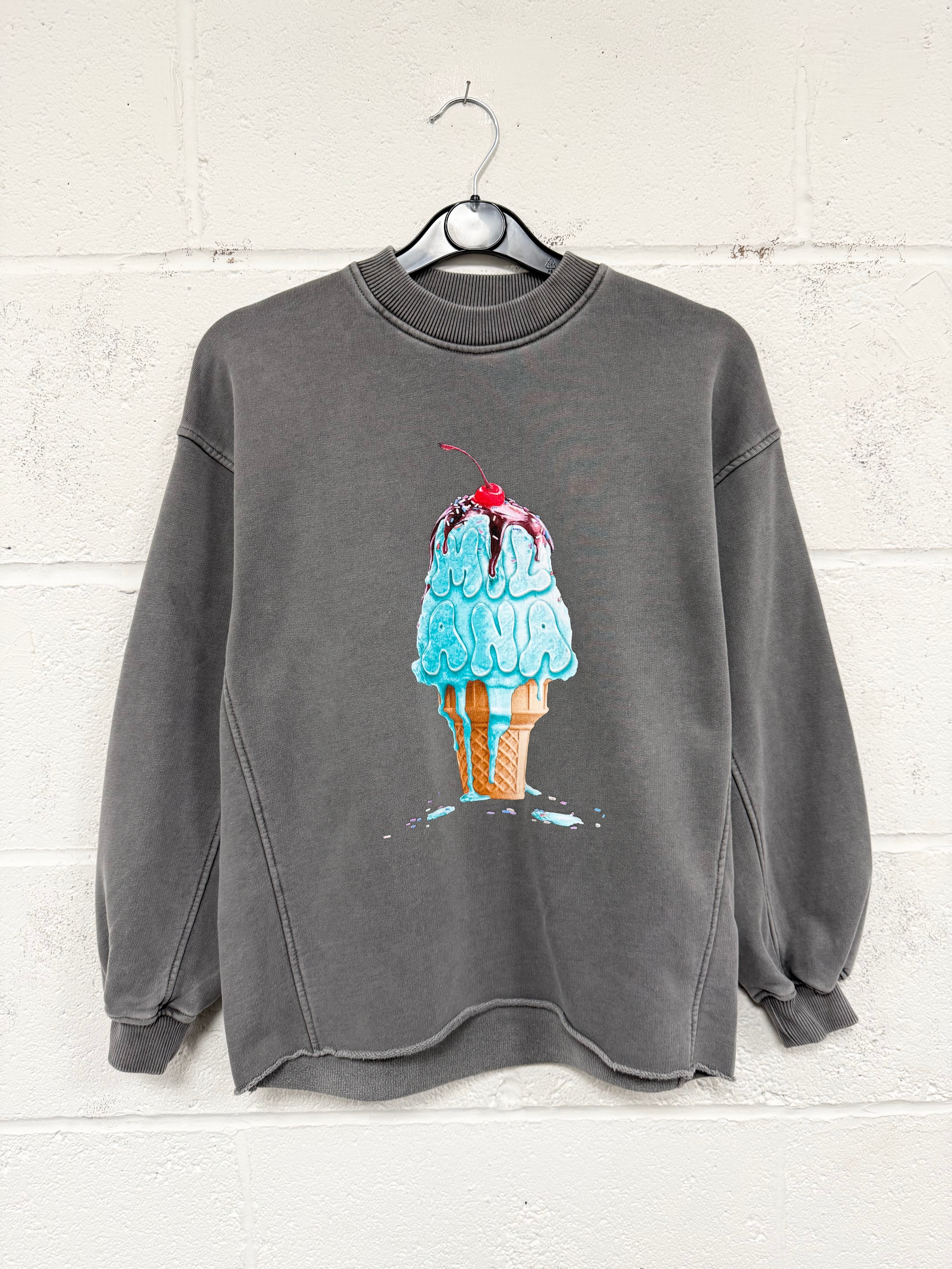 #BB31 Washed Charcoal Ice Cream Kids Open Hem Sweatshirt.