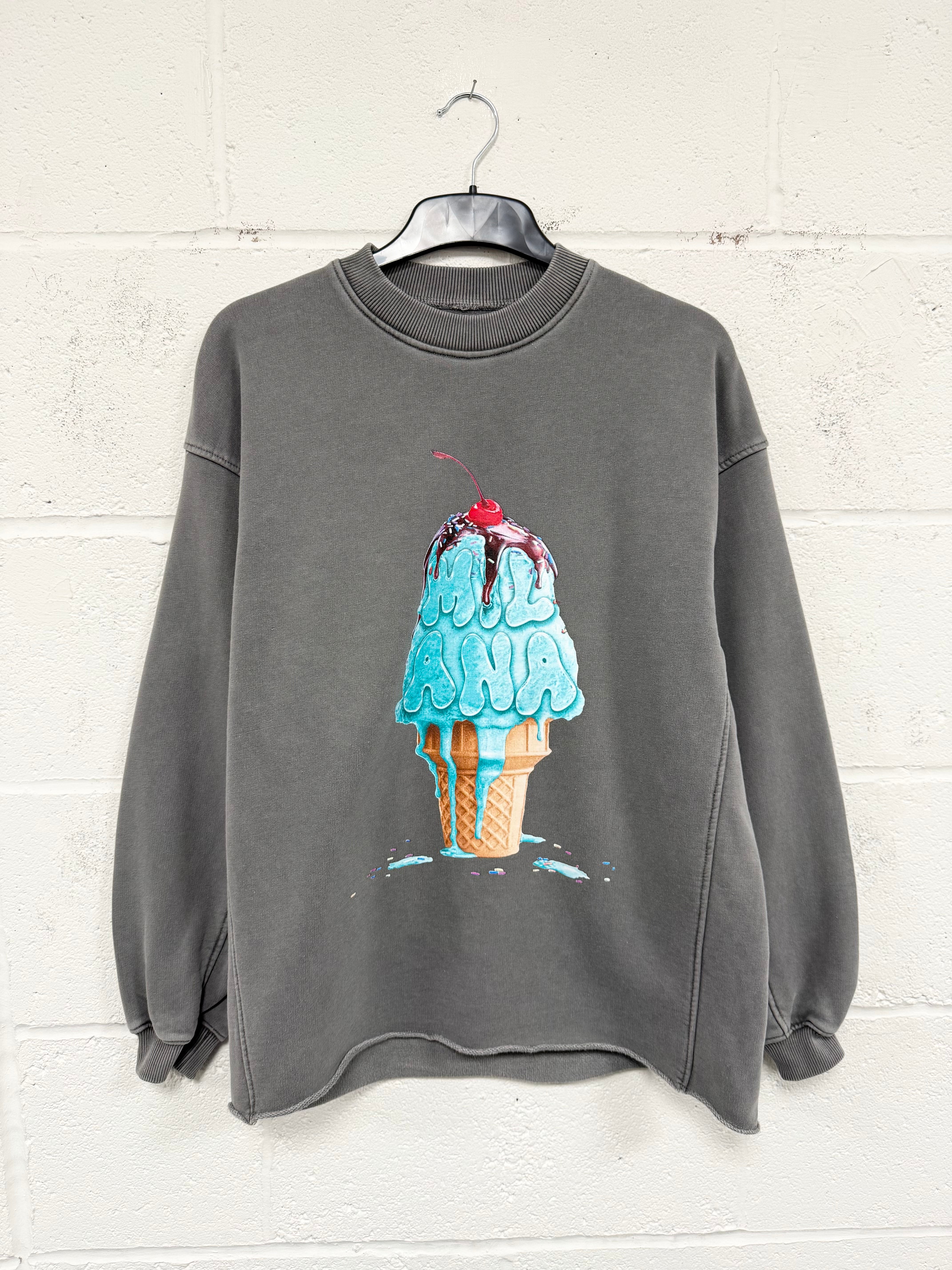 #BB41 Washed Charcoal Ice Cream Kids Open Hem Sweatshirt.
