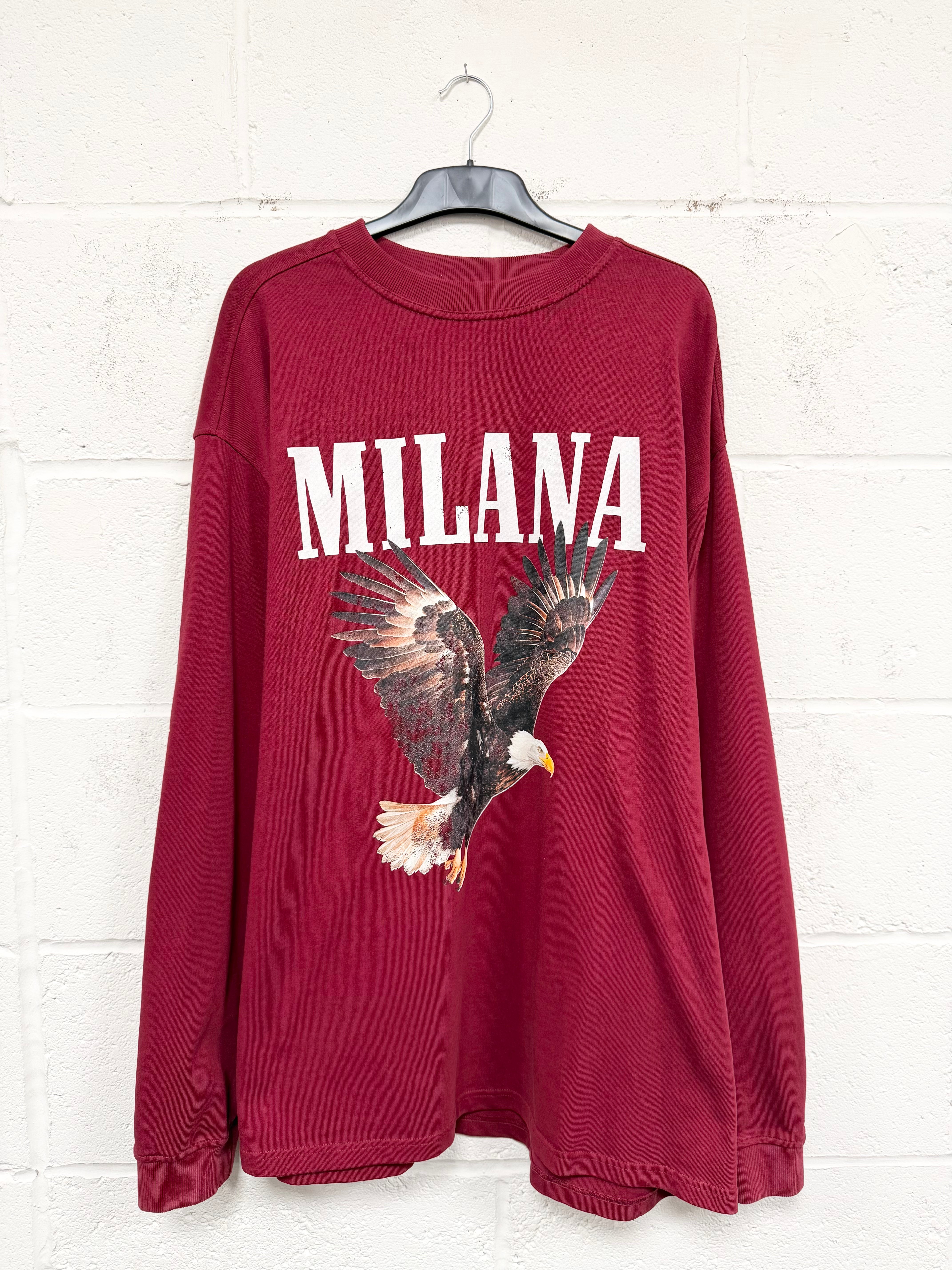 #H29 Burgundy Eagle Heavyweight Long Sleeve T-shirt.