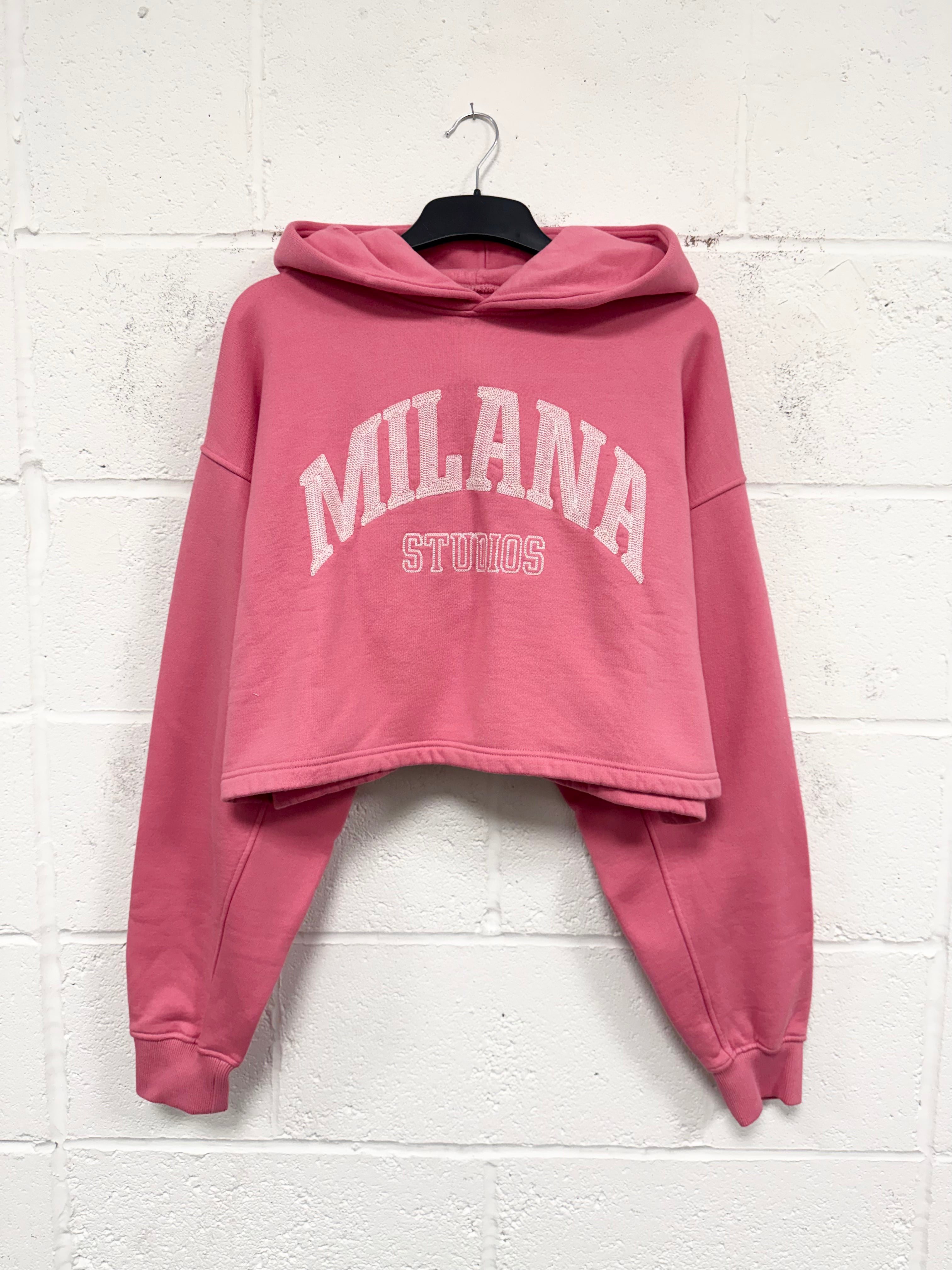 #H39 Pink Graphic Cropped Heavyweight Hoodie.