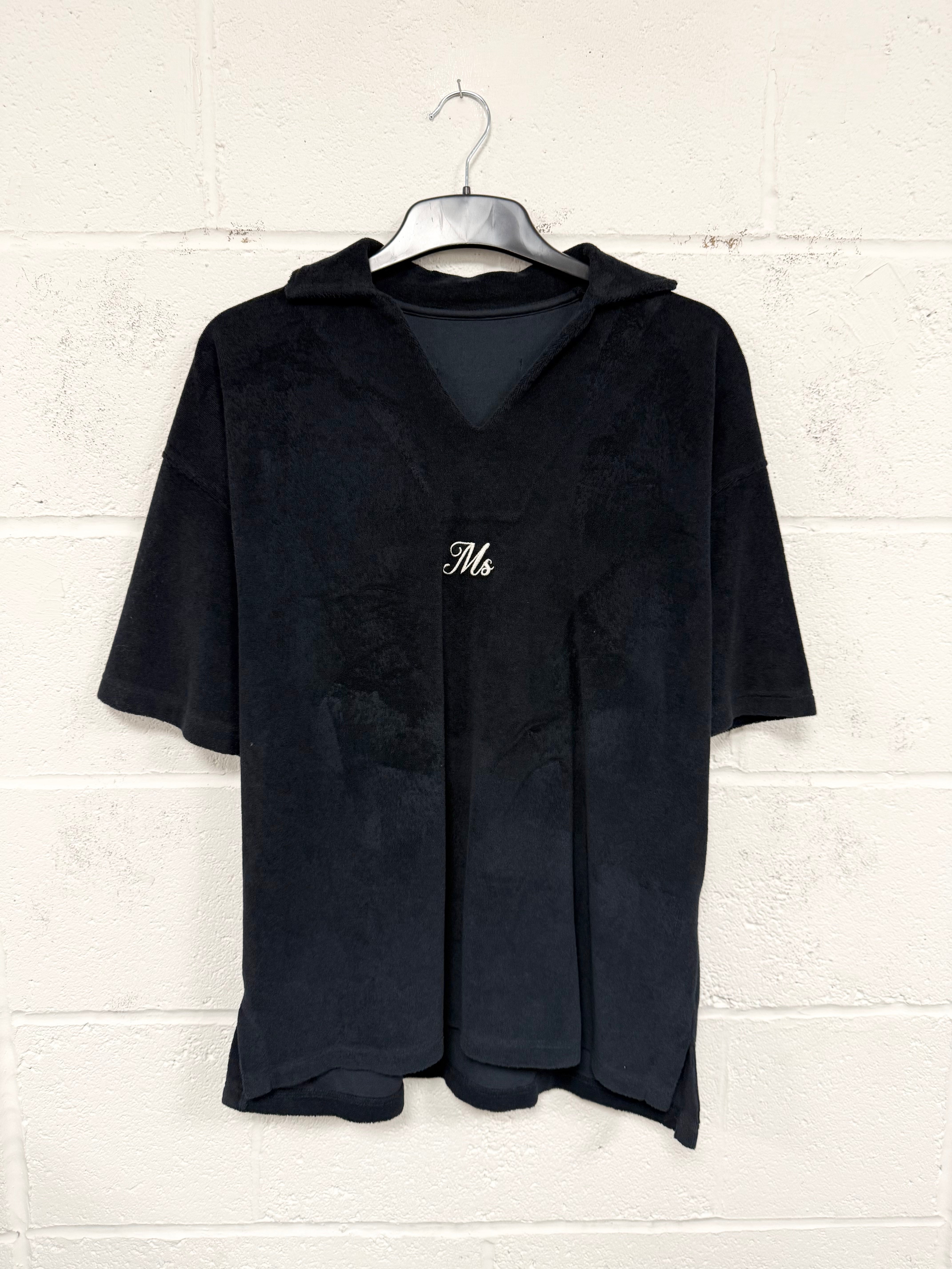 #J83 Black Towelling V Neck Polo.
