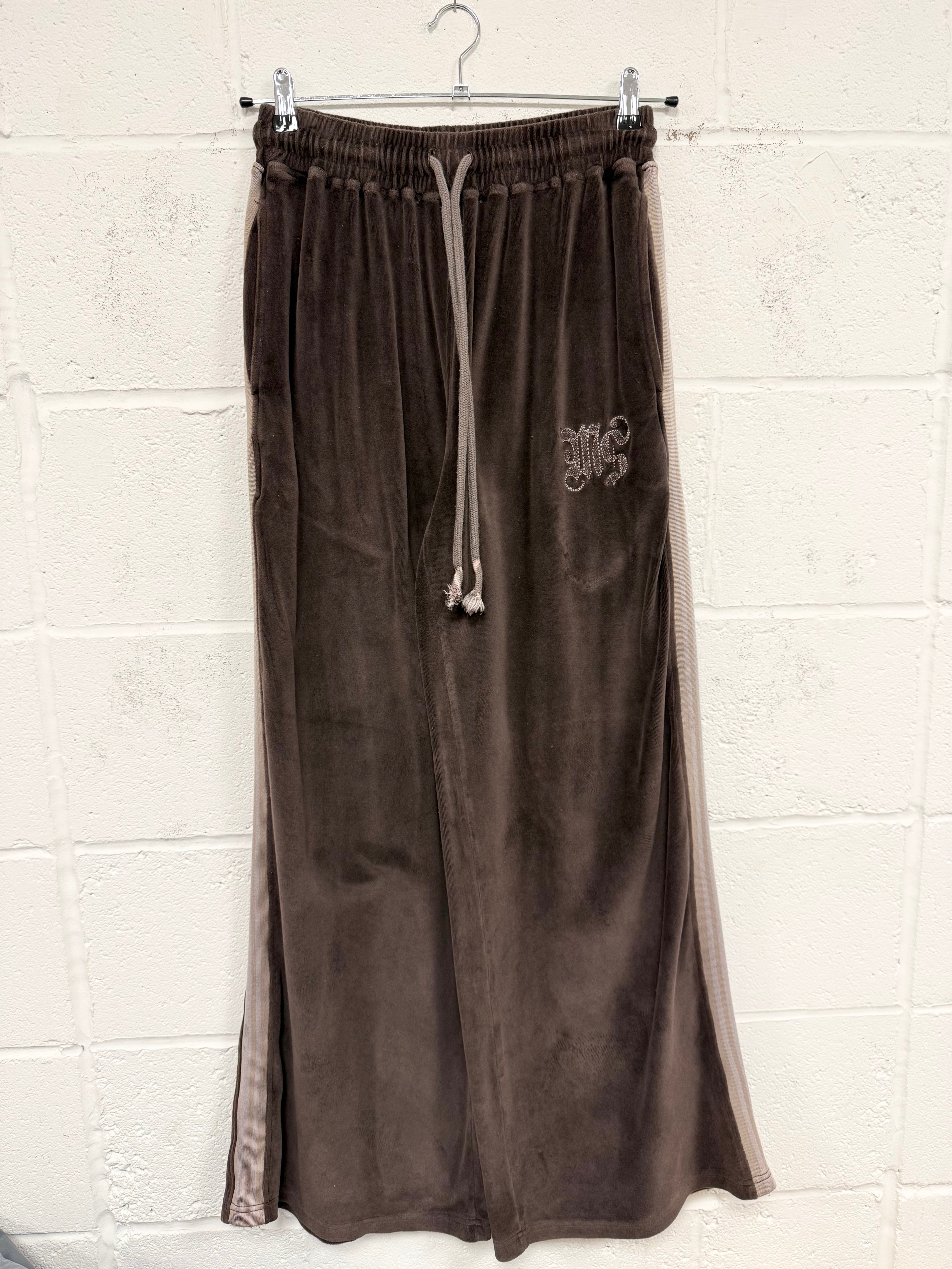 #L68 Washed Brown Velour Wide Leg Sweatpants.