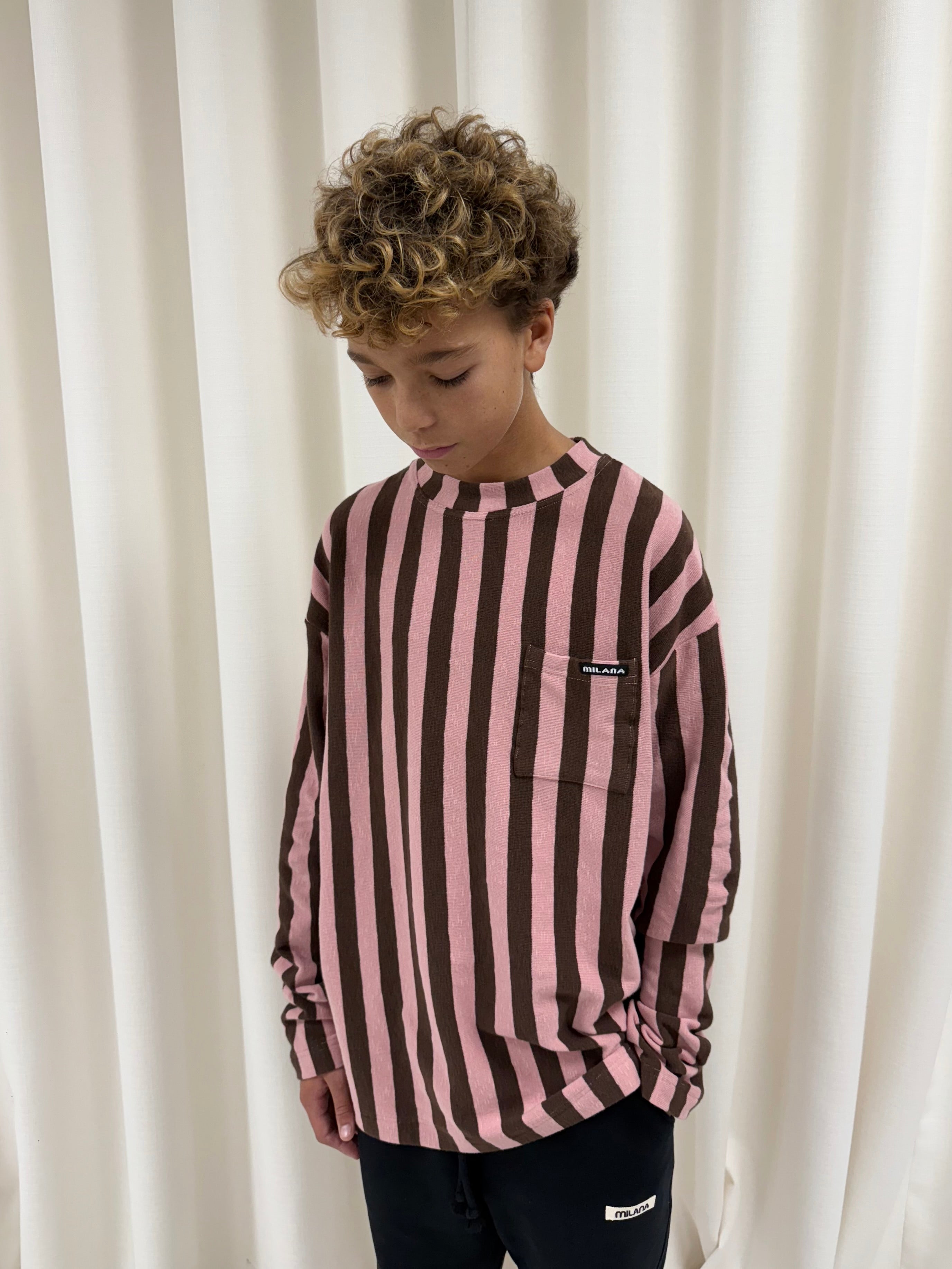 Chocolate Brown and Pink Striped Kids Knitted Long Sleeve.