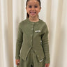 Khaki Green Button Soft Rib Kids Long Sleeve.