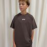 Mini Milana Studios Chocolate Brown Core T-shirt, with our Milana Canvas Patchwork; for the ultimate wardrobe staple. A luxury, everyday, wearable product, crafted into a box fit, dropped shoulder, oversized fit to match our adults range.