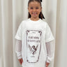 Introducing our Off White Heavyweight Distressed Cherub Stamp T-shirt. Another first for our mini collection, matching our adults collection. Add a little edge to your mini's wardrobe with the distressed cherub stamp print, with a dressy twist from the new mesh sleeves and delicate lace cuff edge. In our brand new 'off white' to add to the vintage effect. Coming in our premium heavyweight fabric, made to last.