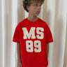 Mini Milana Studios Red MS89 Sweatshirt Tee, with teddy embroidery work. Crafted into a similar boxy fit to our adults range, dropped shoulder, oversized fit for the ultimate look. Pair with the MS89 shorts to complete the look, also coming matching to our adults collection.