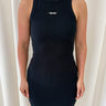 Introducing the Core ribbed racer dress, a luxury, everyday, wearable product, in our new and improved ribbed fabric. A timeless piece and your newest wardrobe staple. With a flattering sinched fit and racer vest style neckline, finished with our Milana Canvas patchwork.
