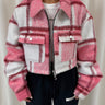 Our Pink Cropped Flannel Jacket features a classic check pattern with a quilted inner lining for added warmth. Designed with a slightly oversized, relaxed fit and dropped shoulders, it’s finished with our signature luxury retro logo label on the button pocket.
