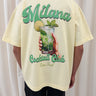 Hey Cocktail Club! Wether you are going out for drinks with friends or a city break with your loved one, cocktails are always needed, even if it is on your t-shirt. Our Washed Lemon Mojito Heavyweight T-shirt, crafted into box fit, dropped shoulder and oversized fit. The distressed graphic work, small on the front and large on the back, can be reversed to your desired look.