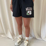 Summer of the fruits... Introducing our newest addition to the Milana Fruit collection, the Black Coconut Mini Shorts. Our mini shorts are crafted into looser fit with a slightly higher and elastic waistband. Finished with thick cotton pull cords and distressed graphic work; for the ultimate wardrobe staple.