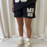 MS89 Black Teddy Mini Shorts, new for SS25. Match our MS89 Sweatshirt Tee's with the Mini Shorts, designed with a higher waistline and crafted into looser fit for the ultimate flattering fit this spring summer. Finished with thick cotton pull cords.