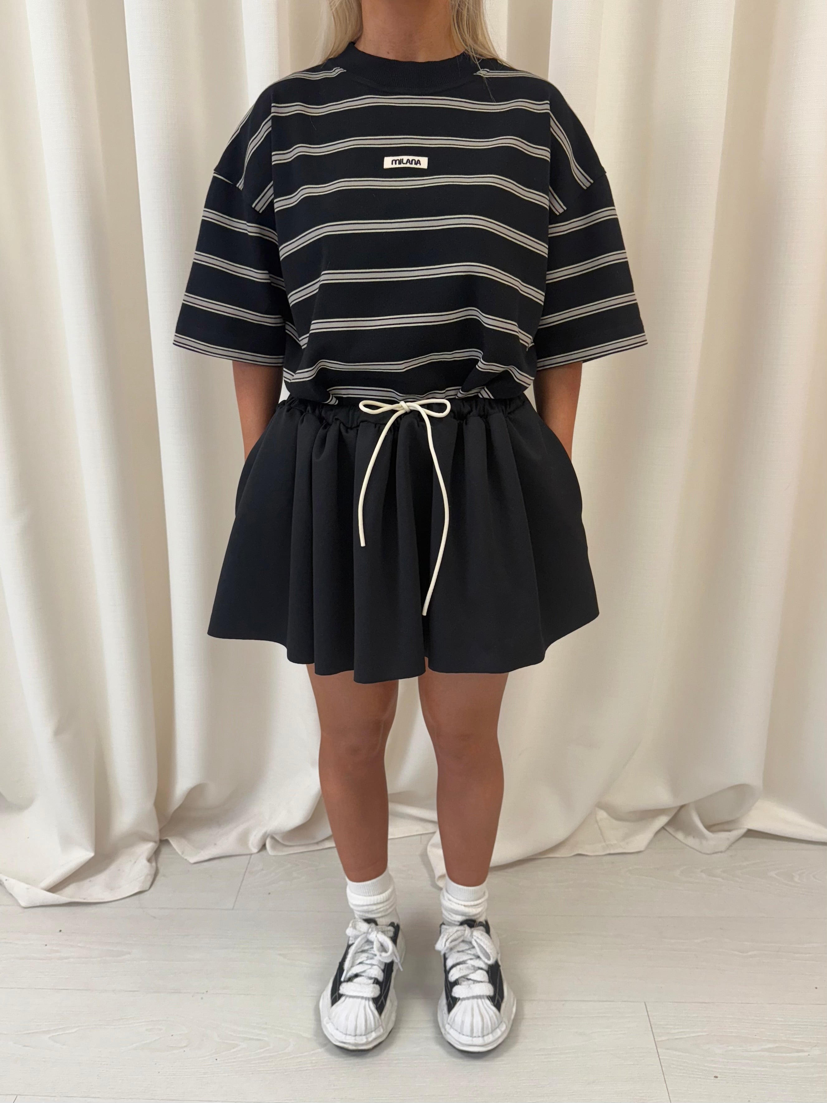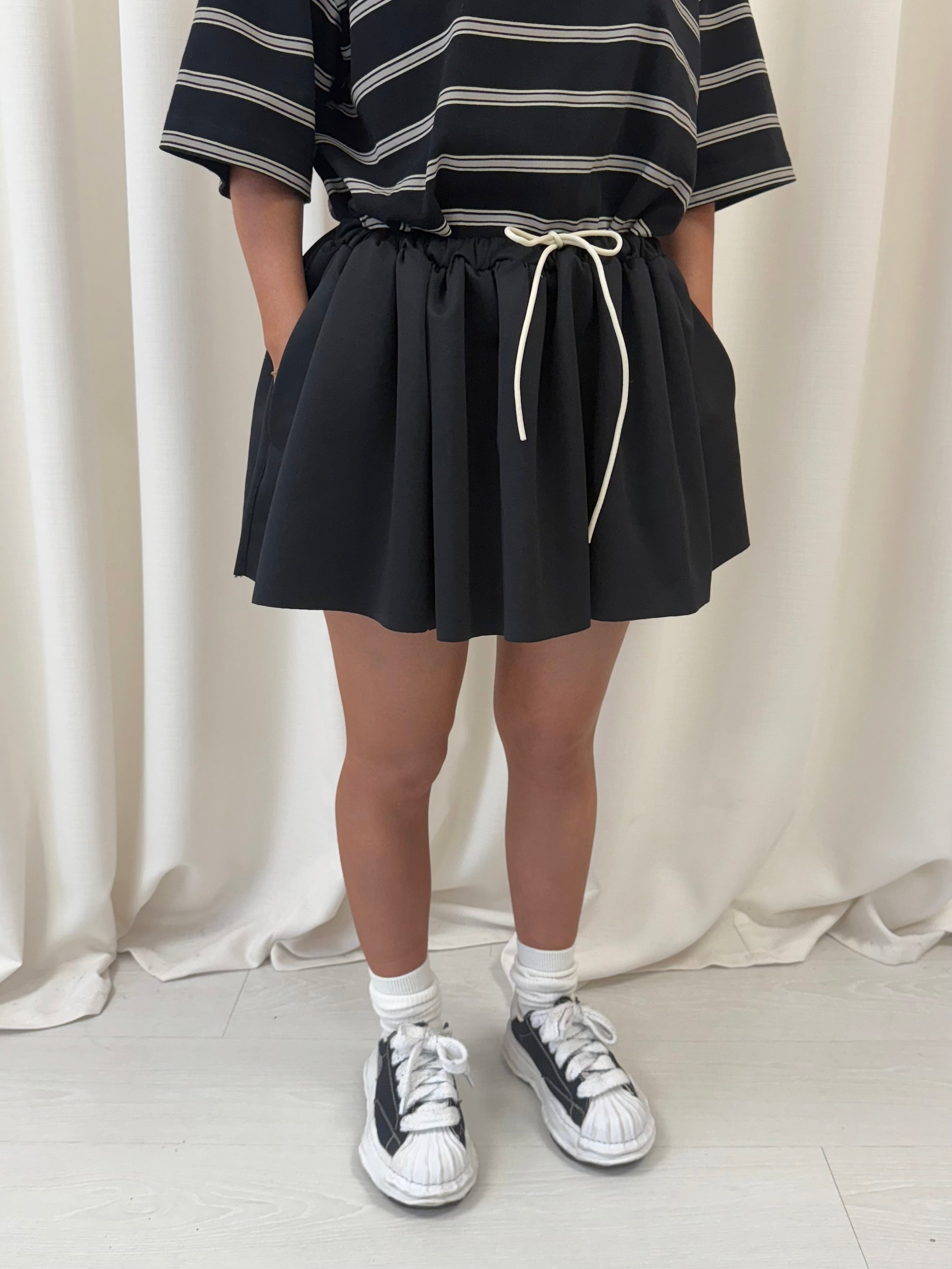 Black Nylon Bubble Hem Skirt.