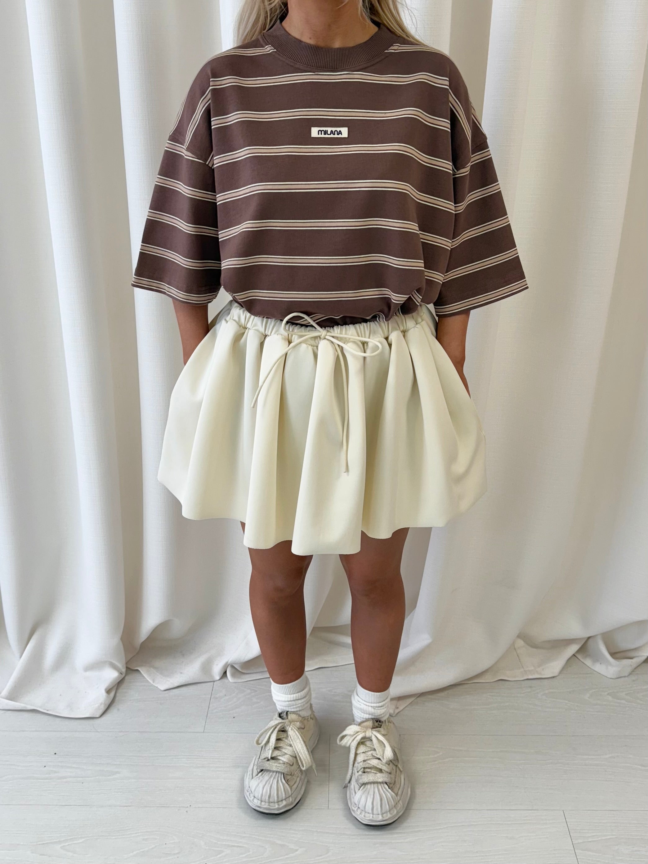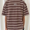 Season Of The Stripes... Make every outfit pop with our brand new stripe collection. The Brown Stripe Heavyweight T-shirt, coming in our unbeatable signature cotton jersey with our Milana canvas patchwork. Crafted into box fit, dropped shoulder, oversized fit with added distressed graphic work; for the ultimate wardrobe staple.