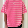 Season Of The Stripes... Make every outfit pop with our brand new stripe collection. The Pink Striped Heavyweight T-shirt, coming in our unbeatable signature cotton jersey with our Milana canvas patchwork. Crafted into box fit, dropped shoulder, oversized fit with added distressed graphic work; for the ultimate wardrobe staple.