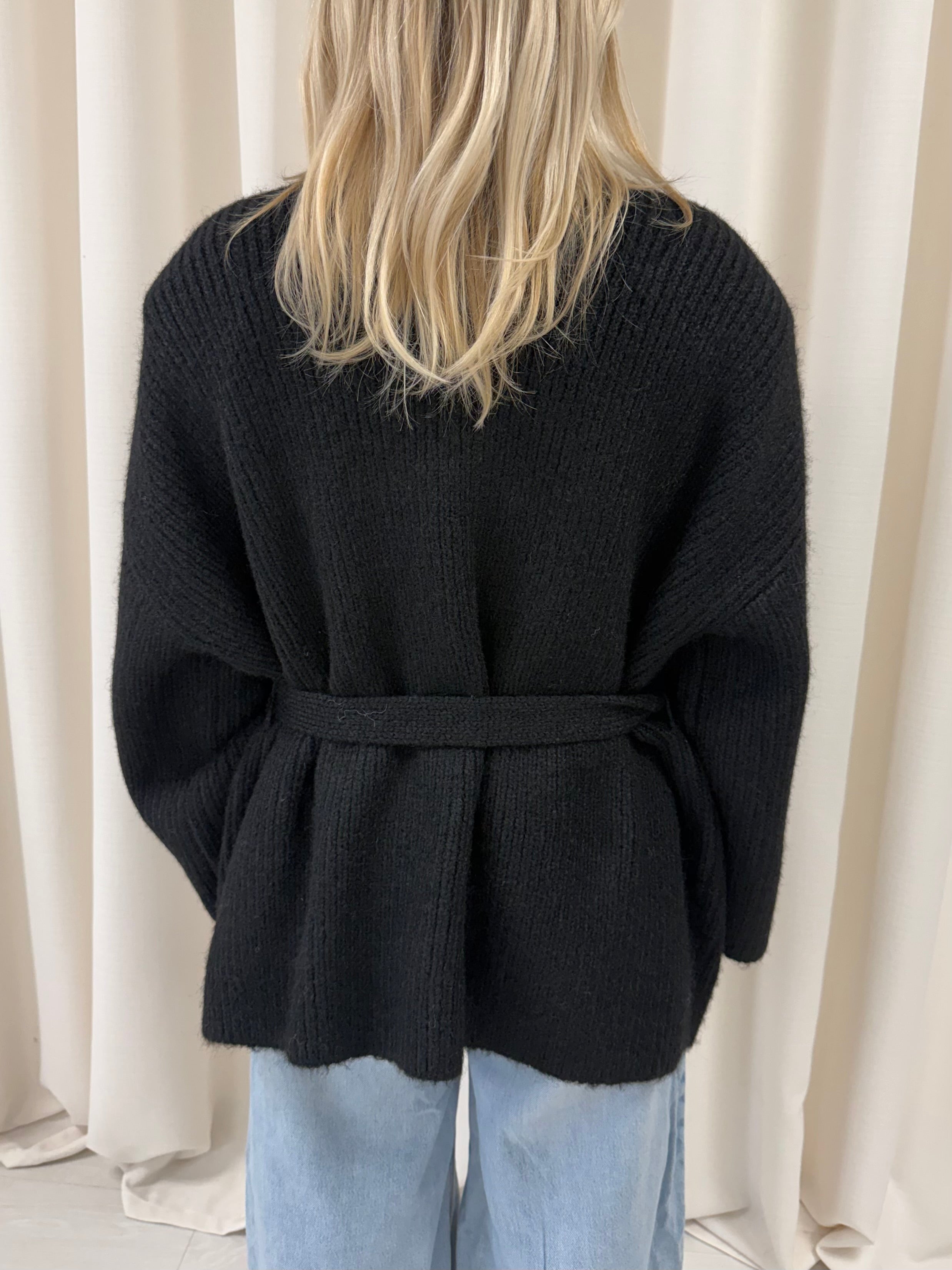 Black Chunky Wool Blend Wrap Cardigan.
