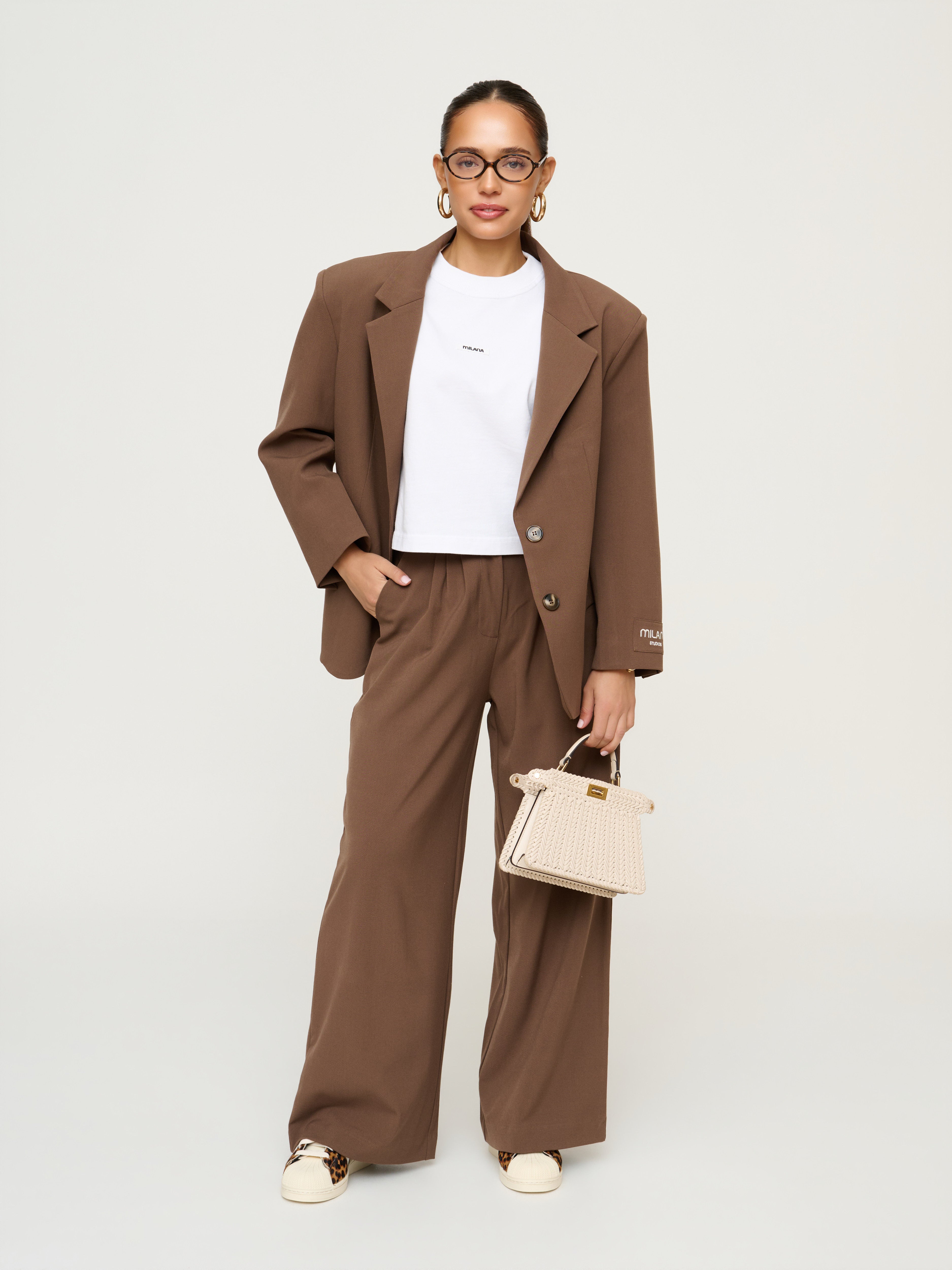 The Blazer you'll grab on repeat starts here! Our Chocolate Brown Structured Tie Back Blazer shaped yet effortless is a modern take on classic tailoring. Crafted from premium textured fabric and fully lined for a refined finish, elevated with bold shoulder pads to make that extra statement to any outfit. The tie-back detail adds a cinched finish, while front button fastening and functional pockets keep it practical, finished with our patchwork sleeve logo for that added statement touch. Pair with our Chocolate Brown Milana Pleated Trouser for a finished look that is designed to move seamlessly from day to evening.