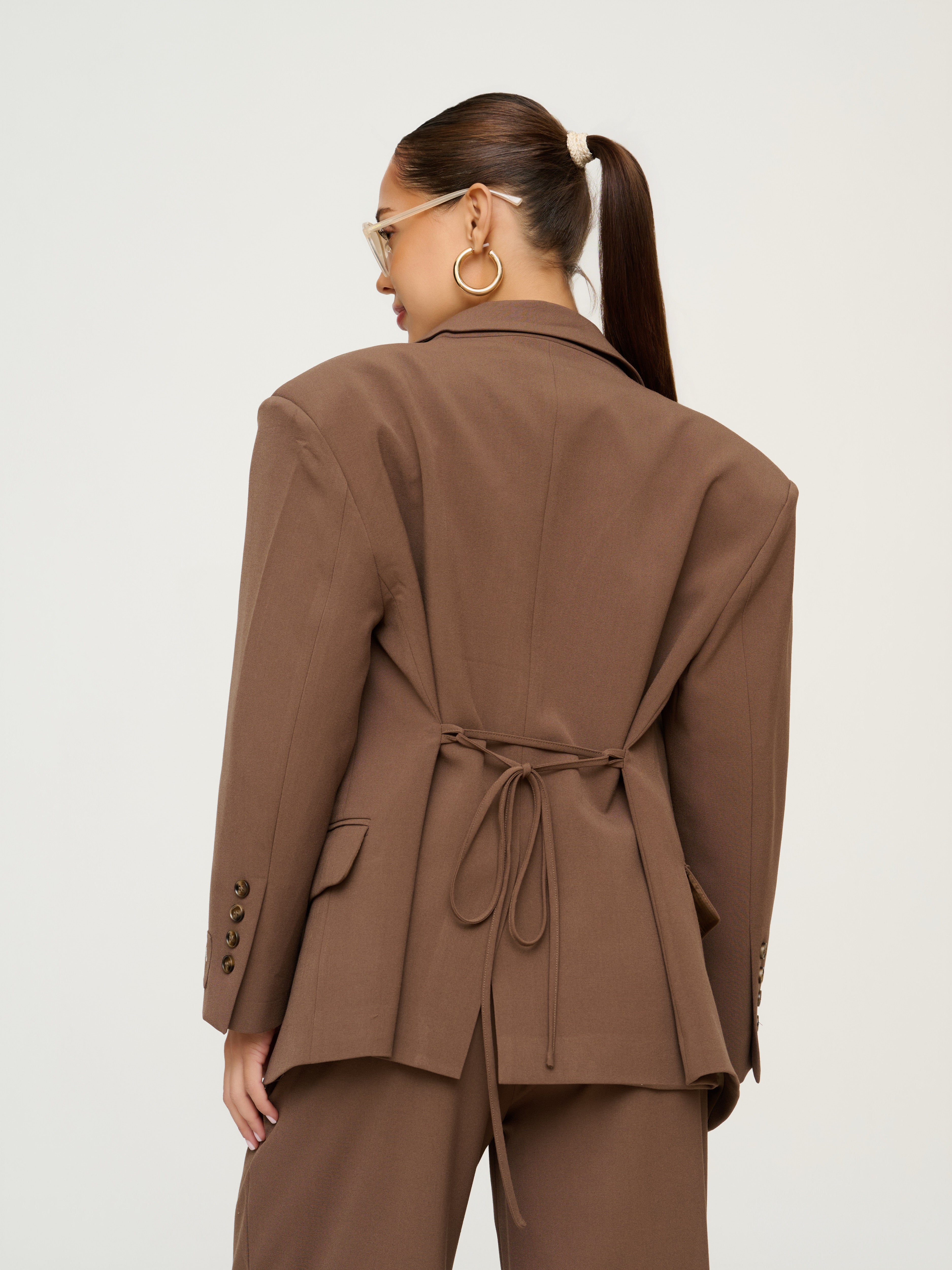 Chocolate Brown Structured Tie Back Blazer.