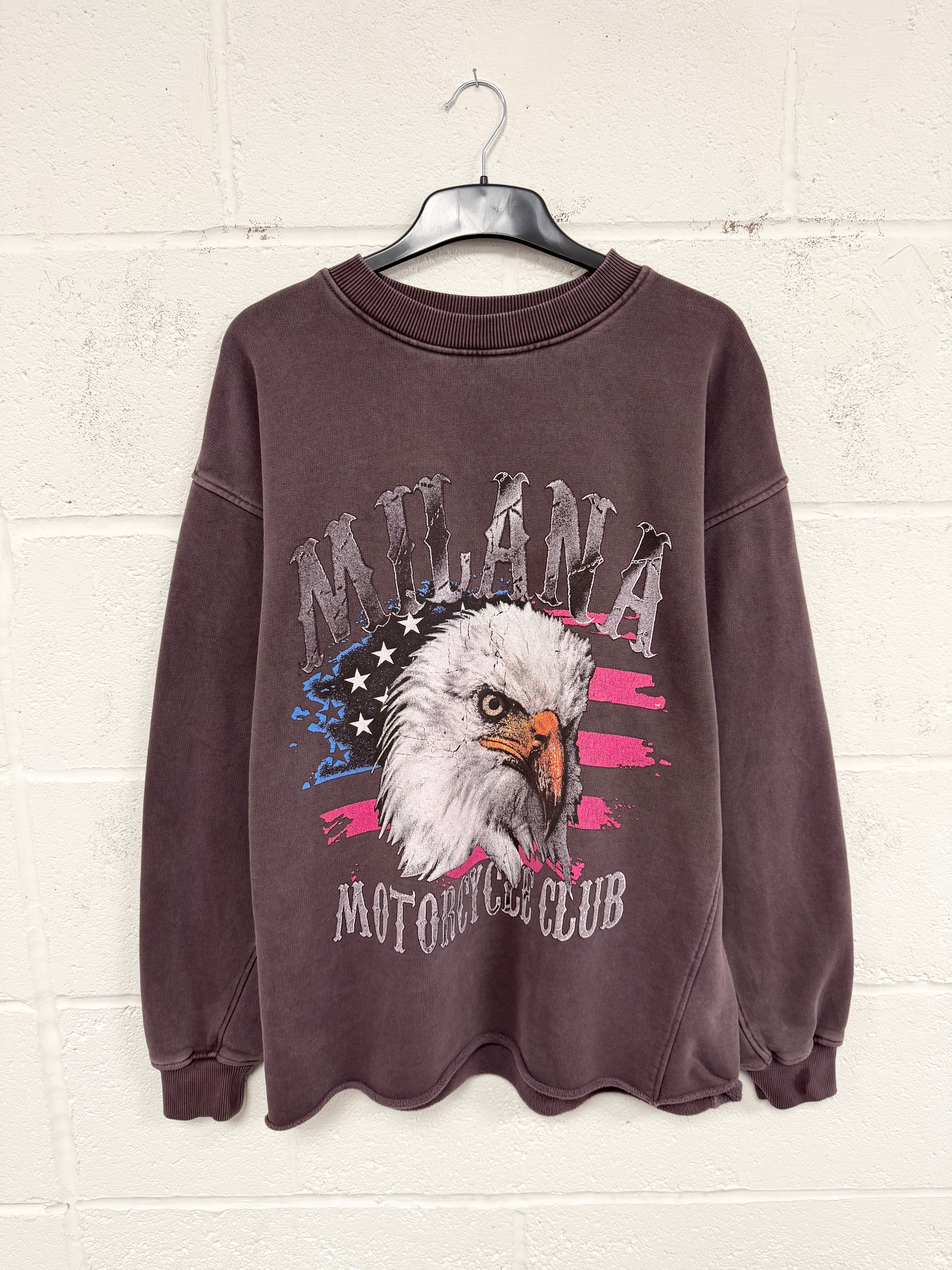 #J28 Washed Plum Eagle Open Hem Sweatshirt.