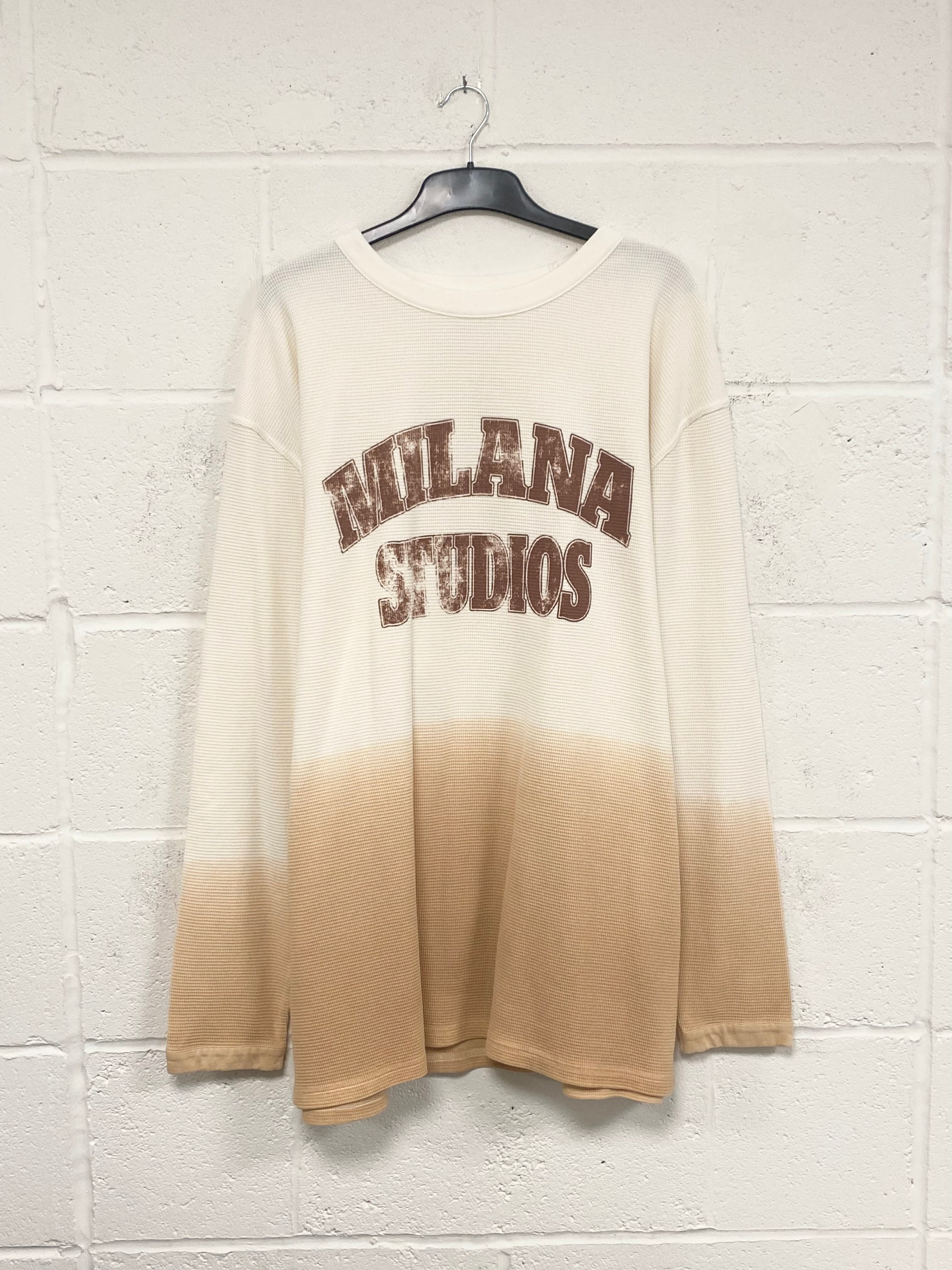 #A92 Cream & Tan Tie Dye Graphic Heavyweight Waffle Long Sleeve.