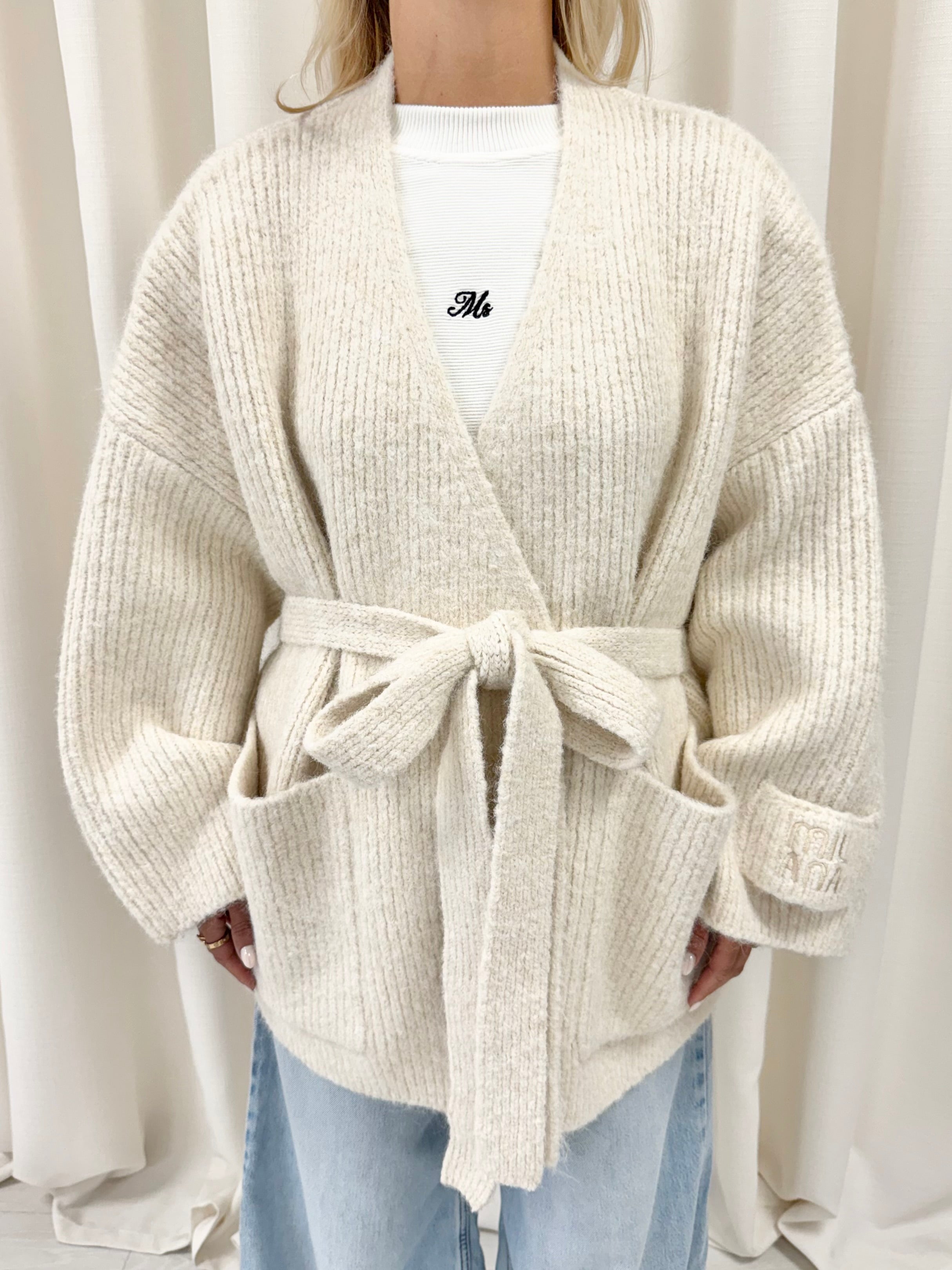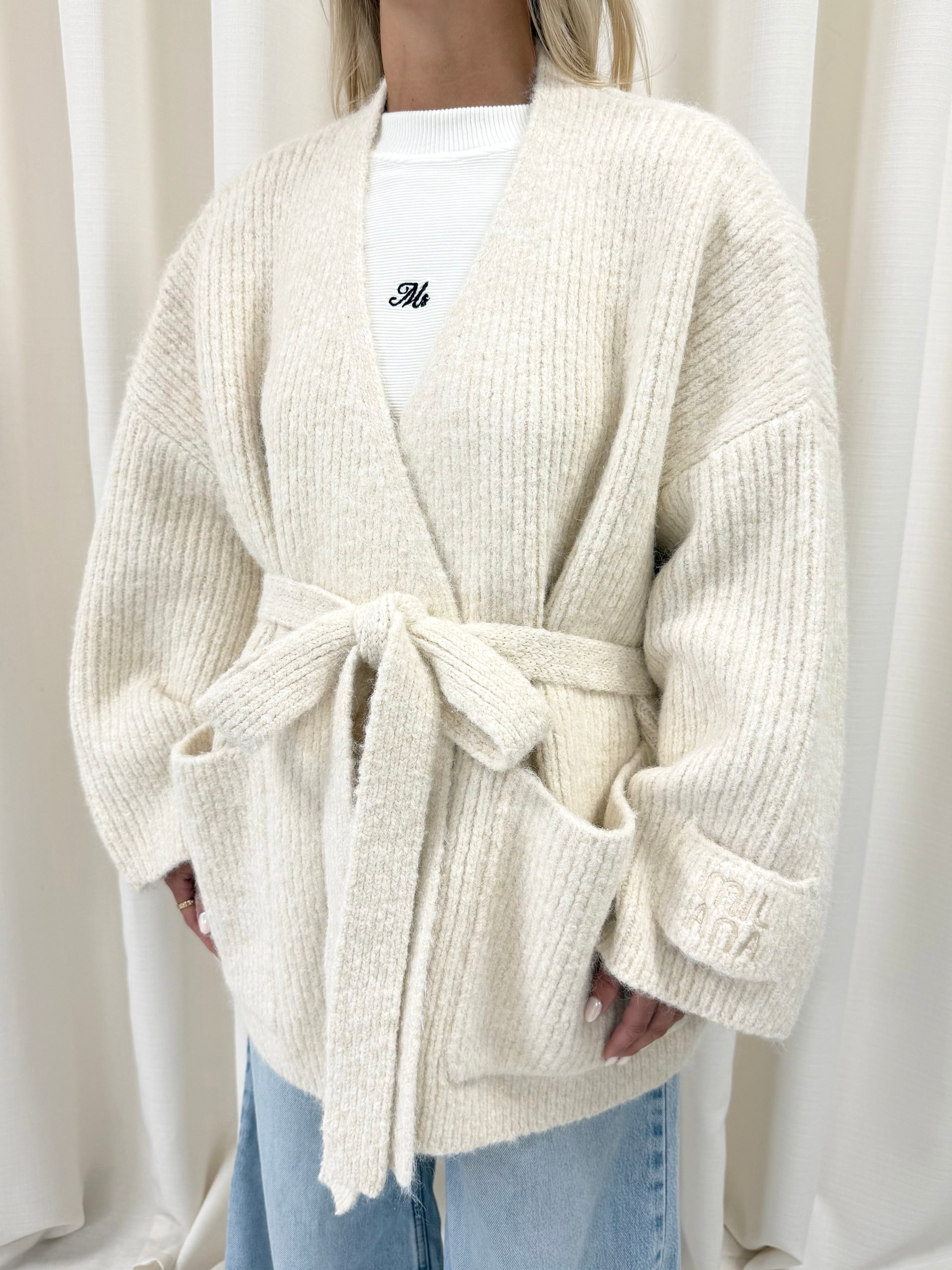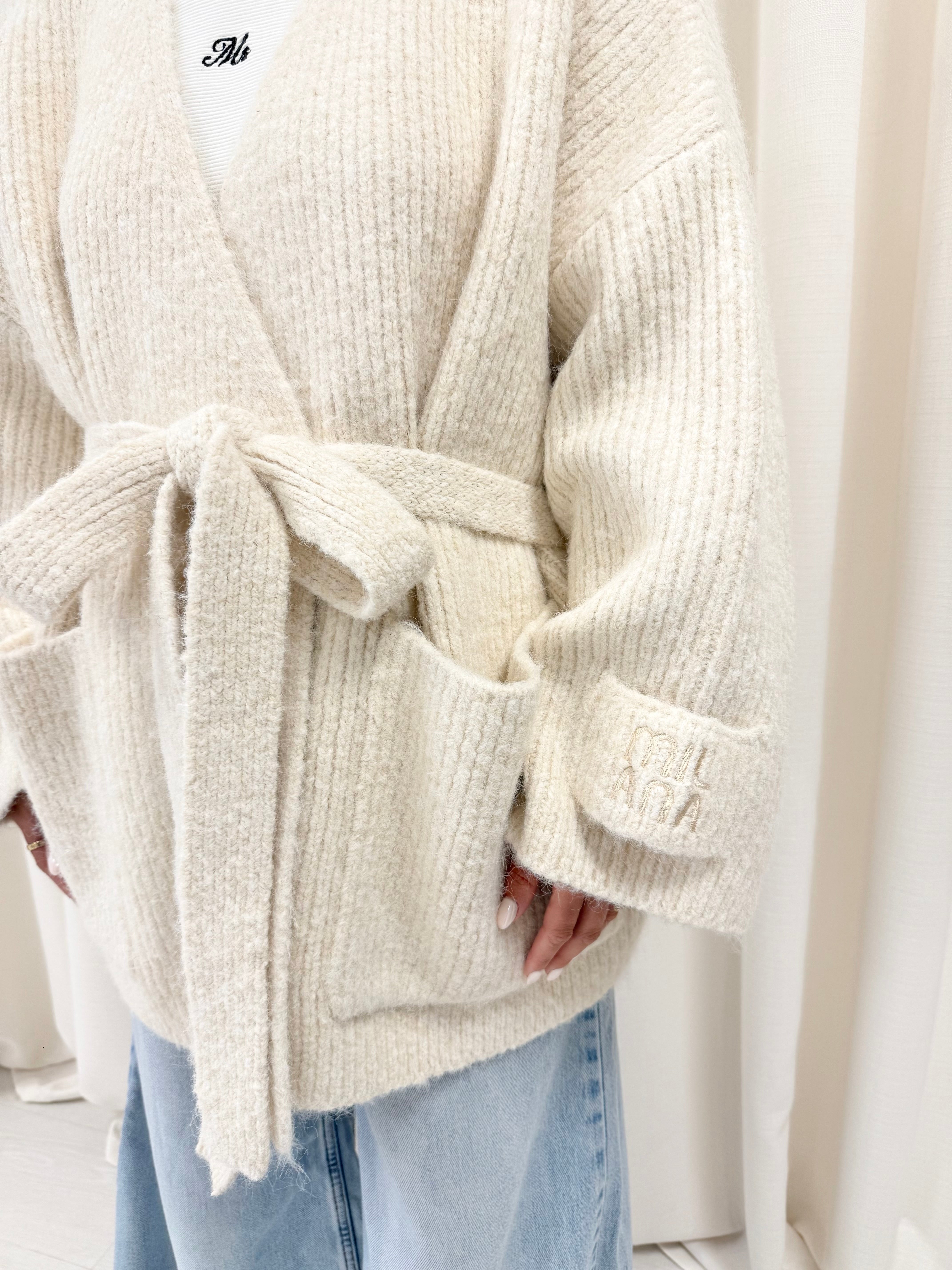Meet the cardigan you’ll reach for all season, our Milk Chunky Knitted Wrap Cardigan. New for AW25 its Milana’s softest, warmest knit yet. Crafted in our newly upgraded wool-blend yarn, designed with a wrap-around tie belt for an adjustable, flattering fit. Complete with our signature Milana patchwork logo on the sleeve, it’s the ultimate throw on and go layer, effortlessly cosy, endlessly wearable, and made to last.
