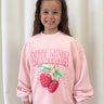 Mini Milana Studios Powder Pink Raspberry Open Hem Sweatshirt. Crafted into a box fit, dropped shoulder, oversized fit to match our adults range. A new addition to our fruit collection, with matching t-shirts and shorts. Also available in adults sizes to match with your little ones.