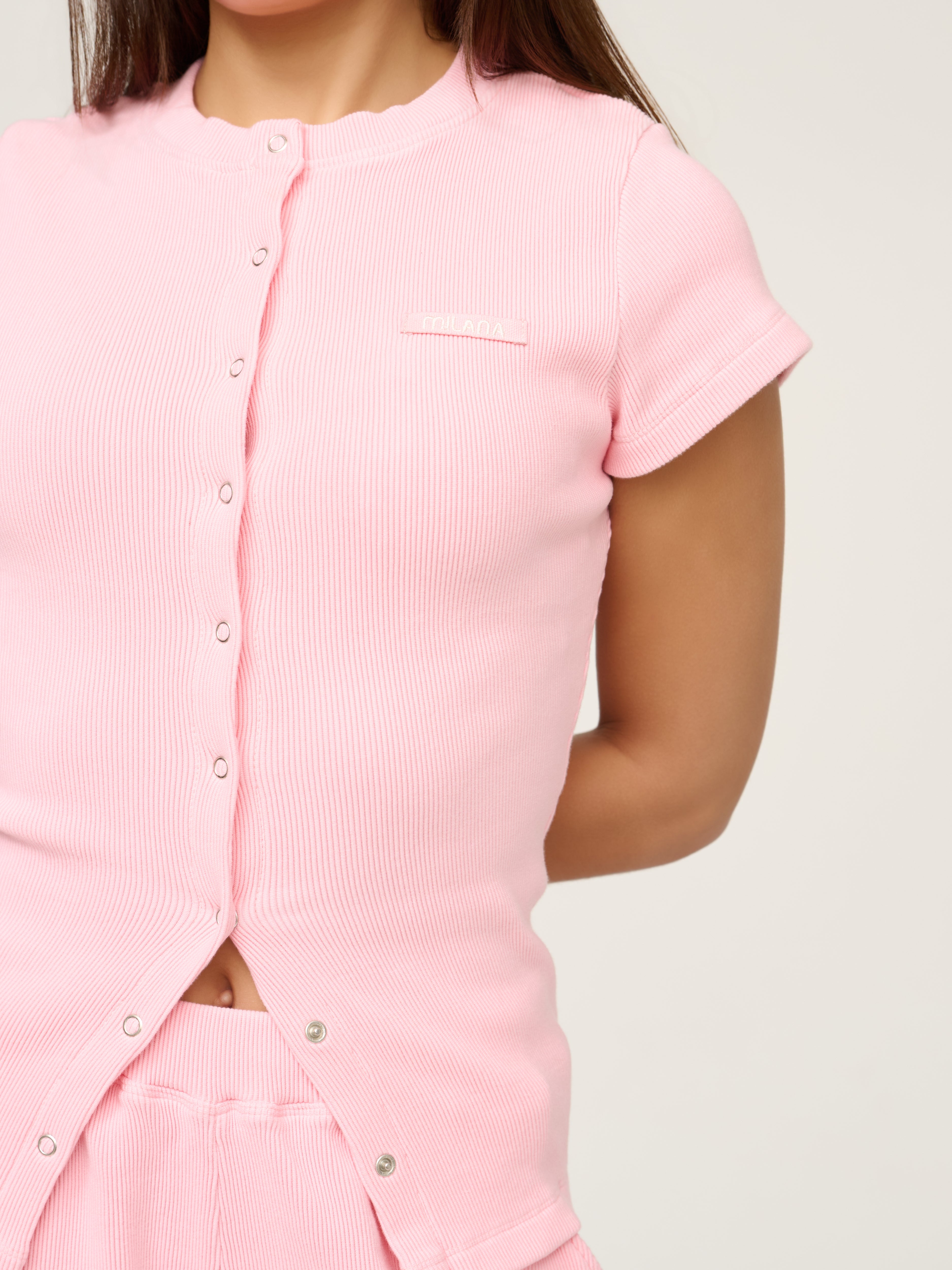 Baby Pink Core Soft Rib Core Button Baby Tee.